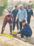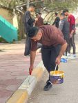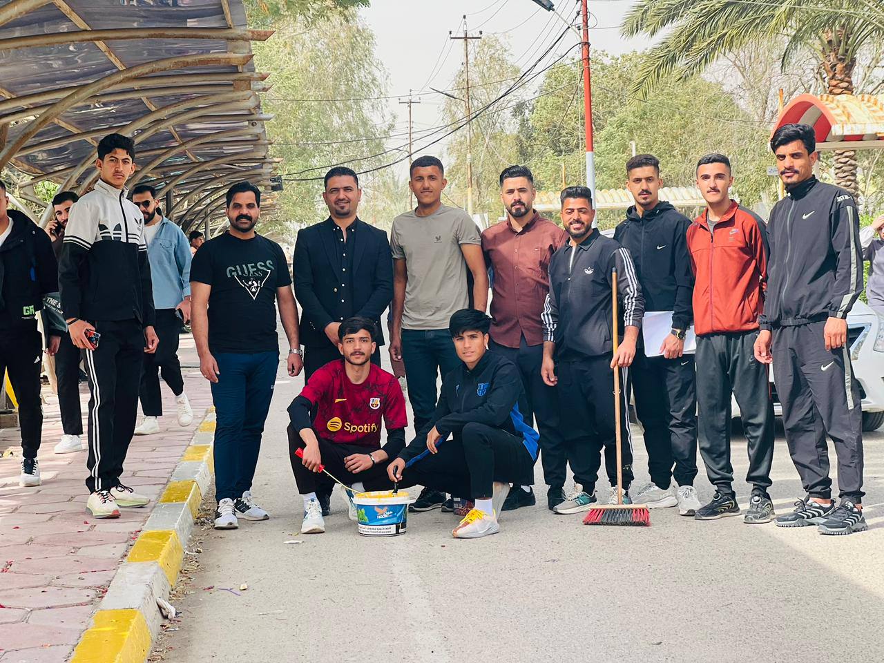 كلية التربية البدنية وعلوم الرياضة بجامعة ديالى تنظم مبادرة تطوعية لطلاء رصيف الكلية